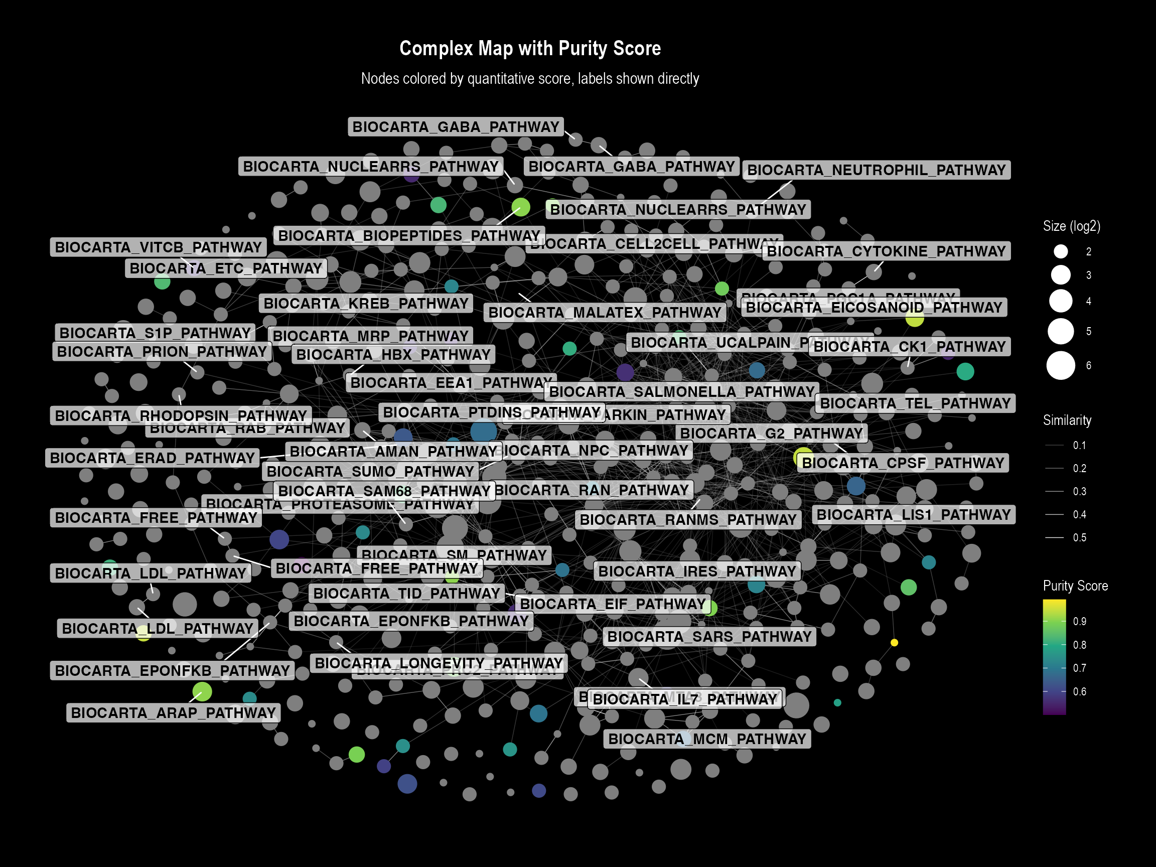 subtitle = "Nodes colored by quantitative score, labels shown directly",